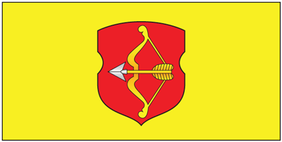 Герб города Пинска"В красном поле "барочного" щита золотой натянутый лук, стальной наконечник стрелы направлен вправо".